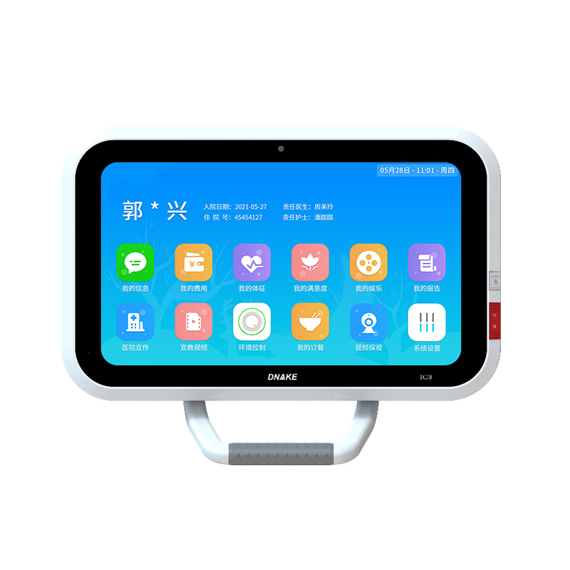 創(chuàng )新安裝在病床旁的支架或者搖臂上,用于顯示患者各項信息和報告,便于醫生和患者查看,具備各項娛樂(lè )功能,也可做娛樂(lè )設備試用,減輕患者住院焦慮。